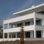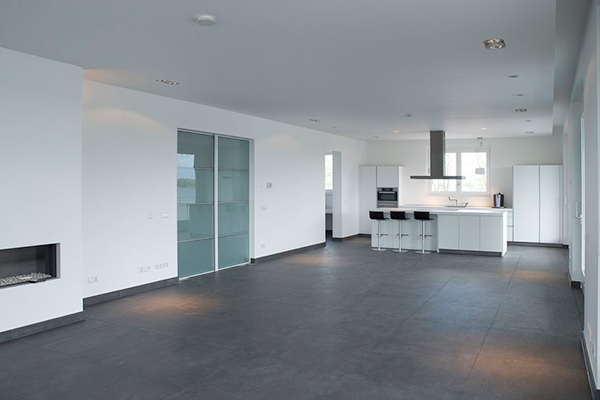 Onderstaande foto's zijn van het interieur van 1 van de villa appartementen. Nadat er inbouwverlichting e.d. waren geplaatst hebben wij alle wanden en plafonds gestukadoord en gespoten in Jan des Bouvrie wit met een buitenverfkwaliteit. Het houtwerk wat vanuit de bouw binnen ook donkergrijs was, is gespoten met zijdeglans wit.